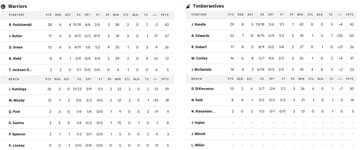 Με το αποτέλεσμα αυτό οι Τίμπεργουλβς έκαναν το 4-1 επί των Γουόριορς και προκρίθηκαν για δεύτερη διαδοχική σεζόν στους τελικούς της Δυτικής περιφέρειας, και περιμένουν τον αντίπαλό τους από το ζευγάρι Θάντερ-Νάγκετς.