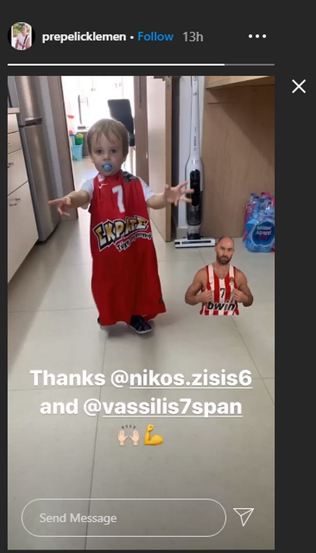 Ο Κλέμεν Πρέπελιτς είναι ένας από τους θαυμαστές του Βασίλη Σπανούλη, αφού ανέβασε μία φωτογραφία στην οποία ο γιος του φοράει τη μπλούζα του αρχηγού του Ολυμπιακού!
