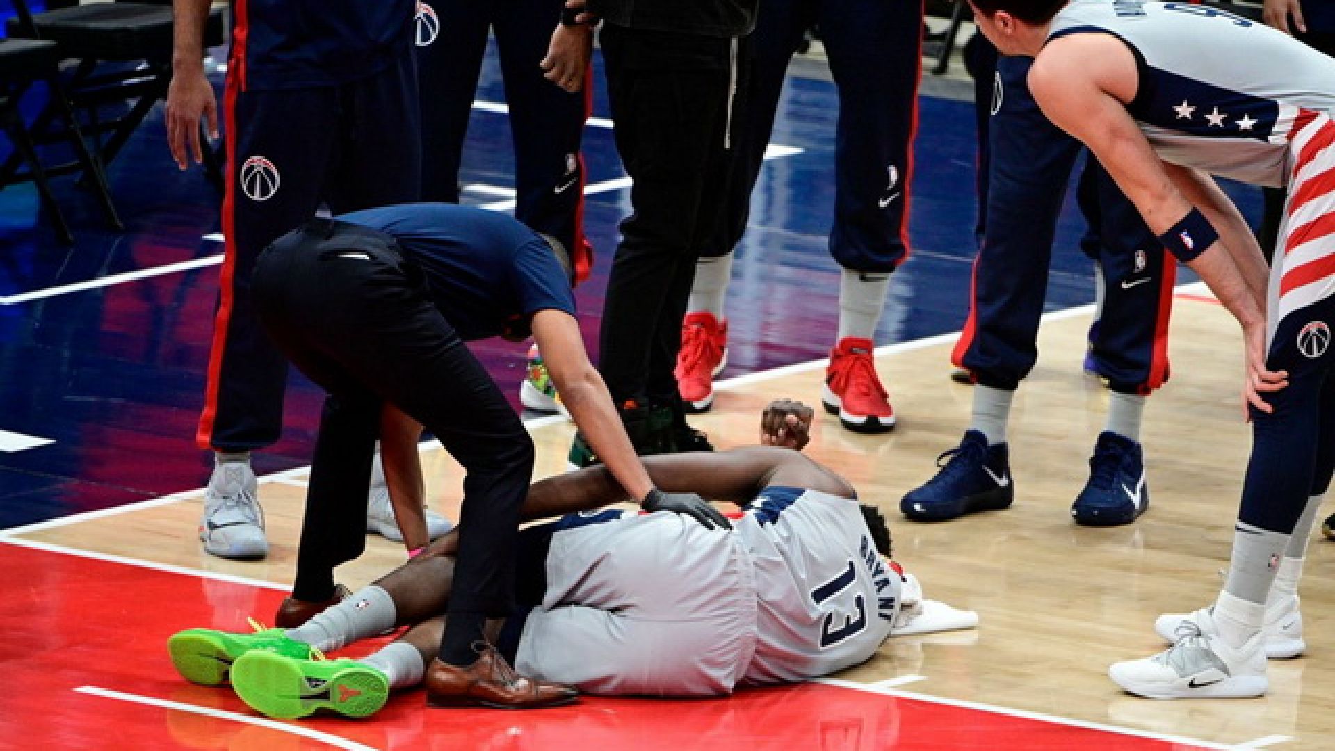 Ο σέντερ της Γουάσινγκτον έπεσε άτσαλα στο παρκέ με αποτέλεσμα να αποχωρήσει τραυματίας στο αριστερό γόνατο, με τον τραυματισμό του να δείχνει, δυστυχώς, σοβαρός, κάτι που αναμένεται να ξεκαθαρίσει μόλις υποβληθεί στην απαραίτητη μαγνητική.