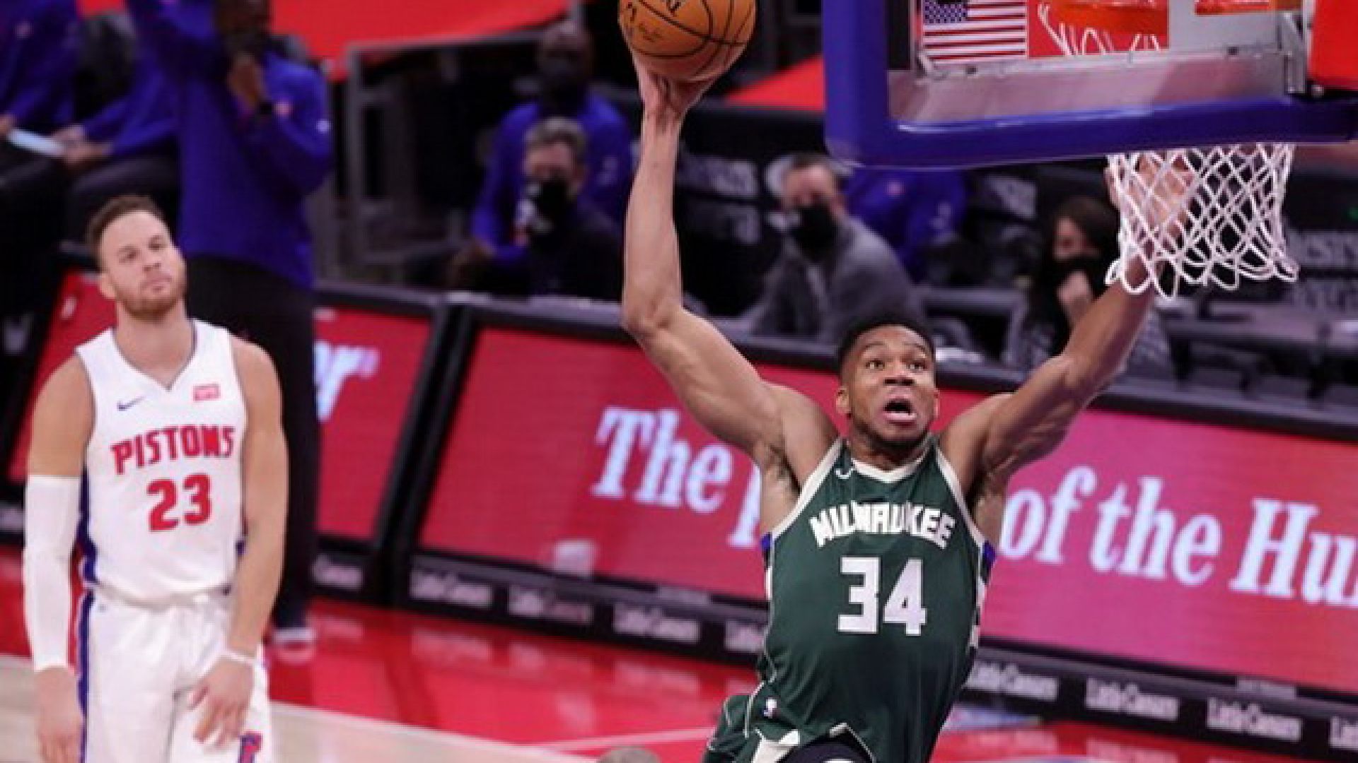 Ο Γιάννης Αντετοκούμπο ήταν για ακόμα μία φορά απολαυστικός, τελειώνοντας το ματς με 22 πόντους, 10 ριμπάουντ και ισάριθμες ασίστ. 21 πόντους είχε ο Χόλιντεϊ και 12 ο Μίντλετον, ενώ για τους Πίστονς, ο Γκραντ είχε 22 πόντους και ο Μίχαϊλιουκ 18.