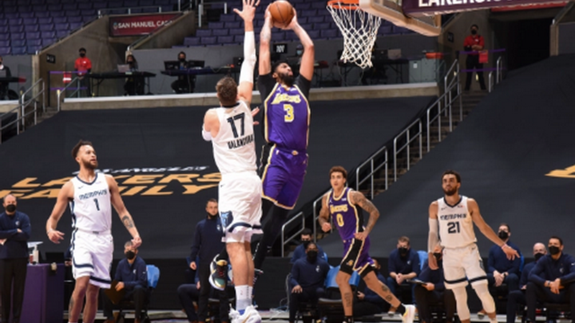 Ο «AD» ήταν εξαιρετικός με 35 πόντους και εννέα ριμπάουντ, με τον Λεμπρόν Τζέιμς να φτάνει μία ανάσα από το triple double, έχοντας 28 πόντους, εννέα ριμπάουντ και οκτώ ασίστ.