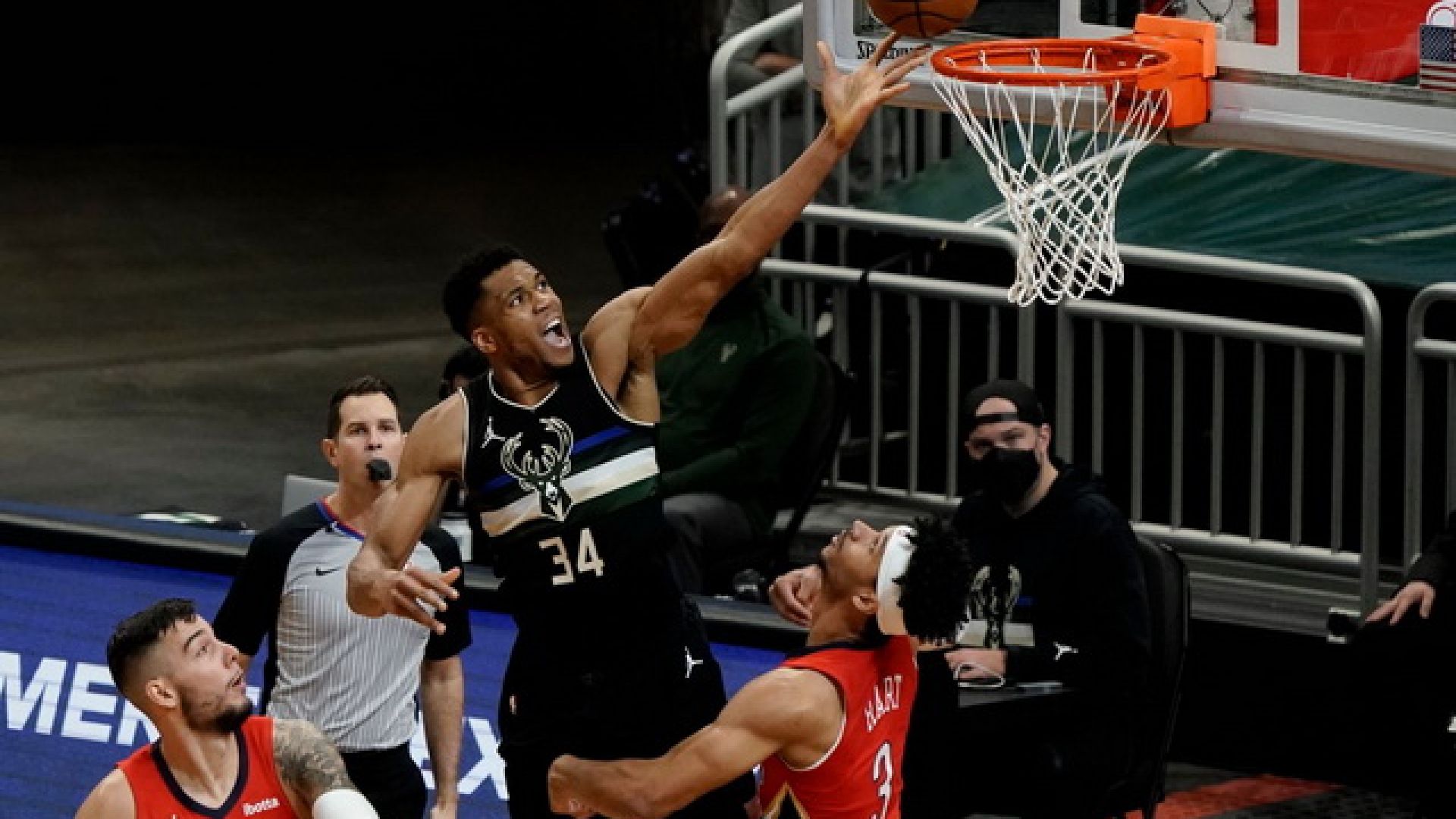 Ο Γιάννης Αντετοκούνμπο θέλει και τον τρίτο συνεχόμενο τίτλο του MVP και το αποδεικνύει σε κάθε παιχνίδι, με τον Greek Freak να… σκορπίζει και τους Πέλικανς, έχοντας 38 πόντους με 14/27 σουτ, 10 ριμπάουντ, τέσσερις ασίστ και μία τάπα, σε 38’.