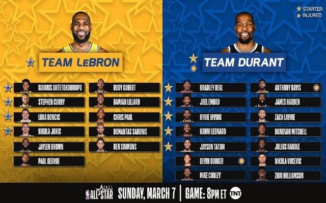 Να θυμίσουμε πως ο Λεμπρόν Τζέιμς θα έχει στο πλευρό του τον 5 φορές All Star Γιάννη Αντετοκούνμπο (Μπακς) αλλά και τους Στεφ Κάρι (Γουόριορς), Λούκα Ντόντσιτς (Μάβερικς) και Νίκολα Γιόκιτς (Νάγκετς), ενώ στον πάγκο θα βρίσκονται επίσης οι Ντέμιαν Λίλαρντ (Μπλέιζερς), Κρις Πολ (Σανς), Μπεν Σίμονς (Σίξερς), Τζέιλεν Μπράουν (Σέλτικς), Πολ Τζορτζ (Κλίπερς), Ντομάντας Σαμπόνις (Πέισερς) και Ρούντι Γκομπέρ (Τζαζ), με προπονητή τον Κουίν Σνάιντερ των Τζαζ.