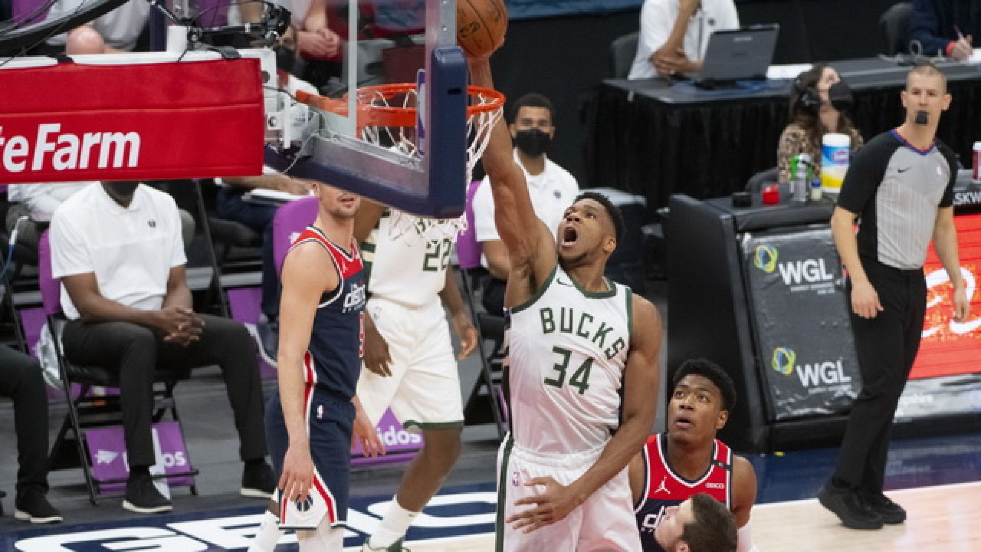 Ο Γιάννης Αντετοκούνμπο έχει πάρει… φόρα με τα triple double, καθώς σημείωσε ακόμα ένα, έχοντα 33 πόντους, 11 ριμπάουντ και ισάριθμες ασίστ, απέναντι στους Γουίζαρντς.