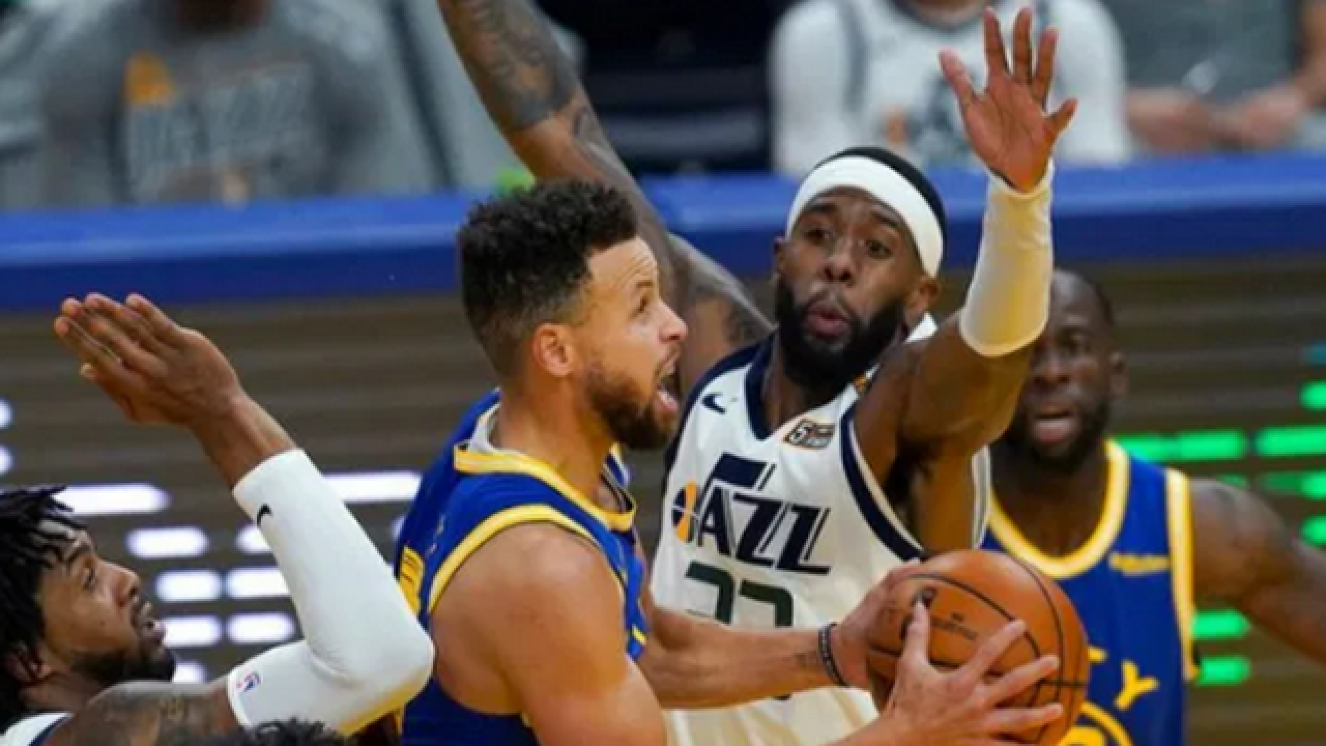 Κάρι με 32 πόντους και 69 τρίποντα και Γουίγκινς με 28 πόντους και 12/16 σουτ, ξεχώρισαν από τους Πολεμιστές, ενώ για την Γιούτα, ο Γκομπέρ είχε 24 πόντους, 27 ριμπάουντ και τέσσερις τάπες.