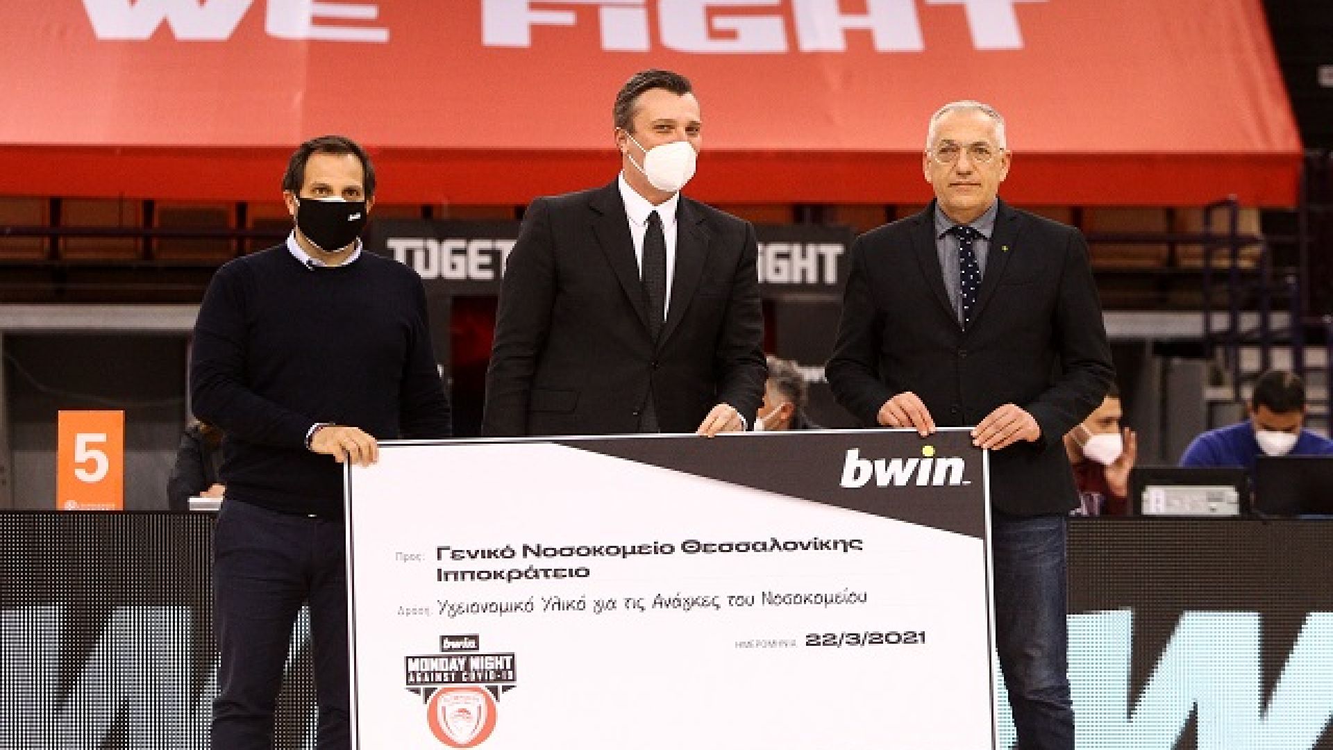 Ο Λευτέρης Αρβανίτης, Αντιπρόεδρος του @ARISBCgr, παρέλαβε εκ μέρους του Γενικού Νοσοκομείου Θεσσαλονίκης «Ιπποκράτειο» υγειονομικό υλικό για την κάλυψη των αναγκών του νοσοκομείου από τον Γ.Δ. της ΚΑΕ Ολμπιακός, Ν. Λεπενιώτη και τον K. Εφραιμίδη, CSR Manager της @bwin_greece . pic.twitter.com/Rs2V1UDit3