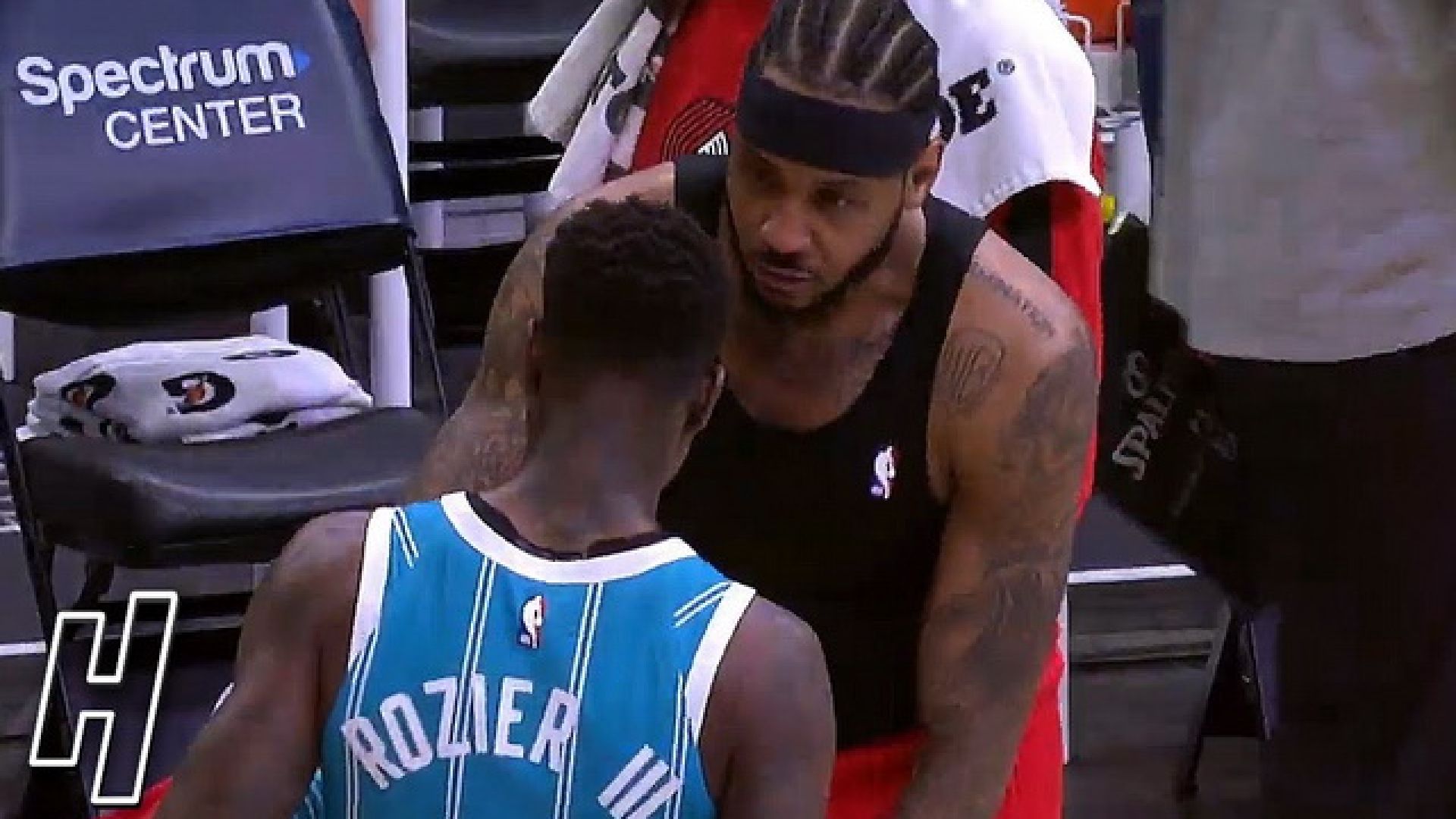 Σπουδαία στιγμή με το φινάλε της αναμέτρησης των Χόρνετς με τους Μπλέιζερς, με τον Τέρι Ροζίερ, MVP της αναμέτρησης, με 34 πόντους, 10 ασίστ και οκτώ ριμπάουντ, να ζητά την φανέλα του Καρμέλο Άντονι, δείχνοντας με αυτόν τον τρόπο, τον απόλυτο σεβασμό προς έναν από τους κορυφαίους σύγχρονους παίκτες του ΝΒΑ.
