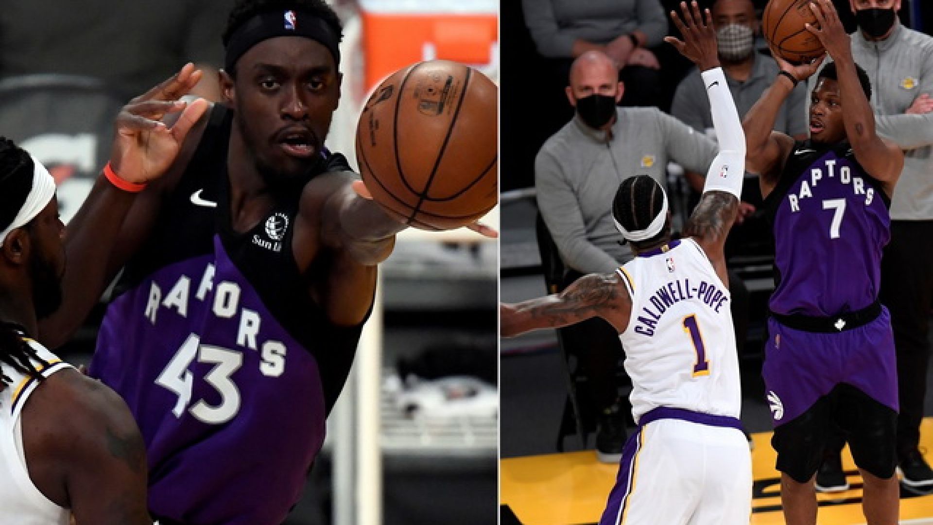 Πασκάλ Σιάκαμ και Κάιλ Λάουρι βρέθηκαν σε… ημιάγρια κατάσταση, στον θρίαμβο των Ράπτορς μέσα στην έδρα των Λέικερς, με τον πρώτο να έχει 39 πόντους και 13 ριμπάουντ και ο δεύτερος 37 πόντους (με οκτώ τρίποντα) και 11 ασίστ, απέναντι στους πρωταθλητές.