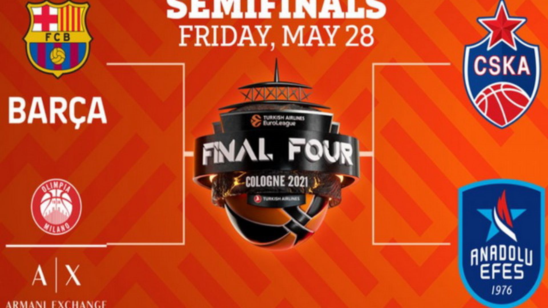 Έτσι, ο πρώτος ημιτελικός ανάμεσα στην ΤΣΣΚΑ και την Εφές, θα πραγματοποιηθεί την Παρασκευή 28 Μαΐου, στις 19:00, ενώ τρεις ώρες αργότερα, στις 22:00, η Μπαρτσελόνα θα αντιμετωπίσει την Αρμάνι Μιλάνο.