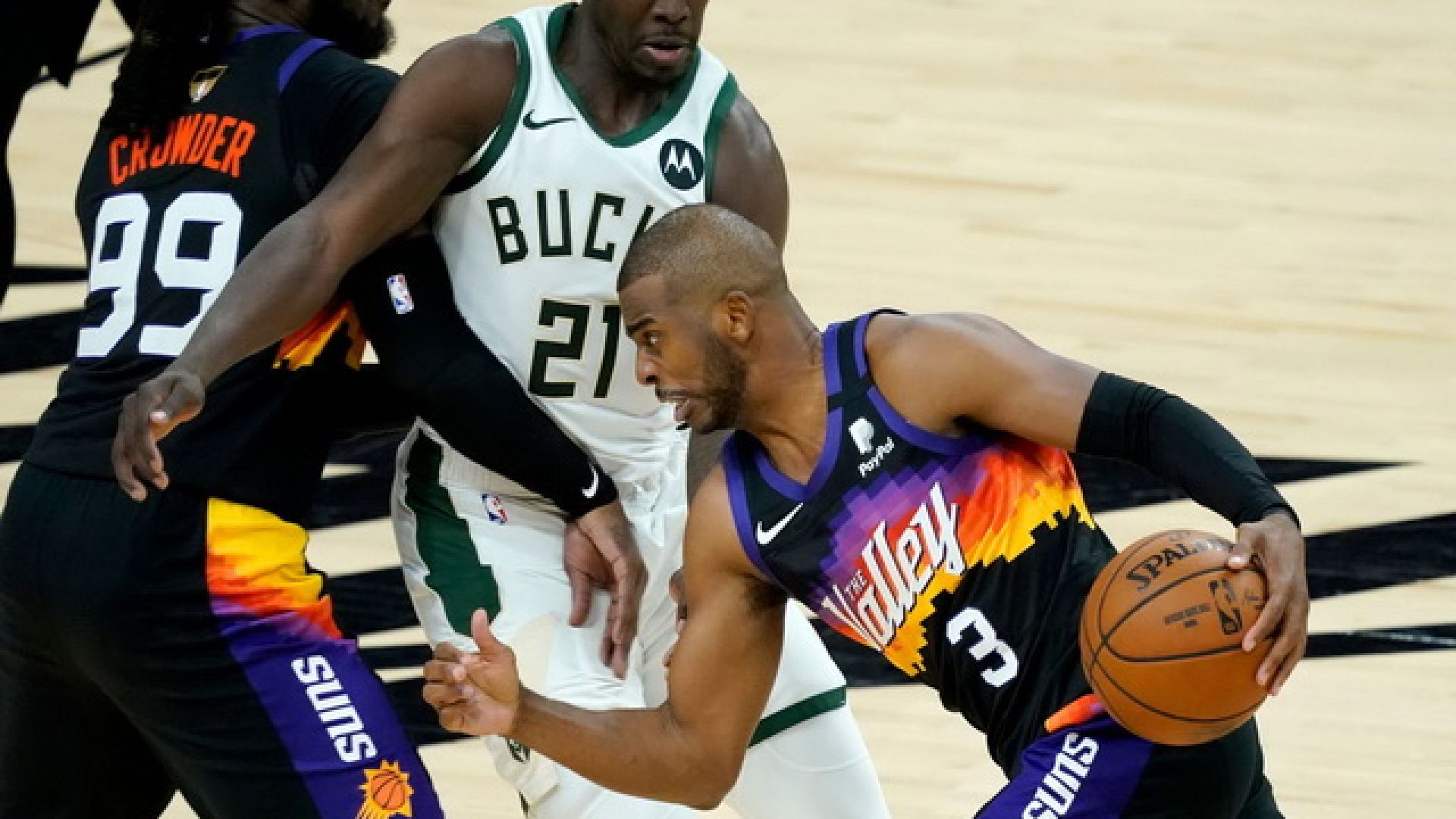 Ο Γιάννης Αντετοκούνμπο… έσφιξε τα δόντια και αγωνίστηκε κανονικά στον πρώτο τελικό του ΝΒΑ απέναντι στους Σανς, όμως το Φοίνιξ, με ηγέτη τον Κρις Πολ, έφτασαν στην νίκη με 118-105, κάνοντας το 1-0 στην σειρά.