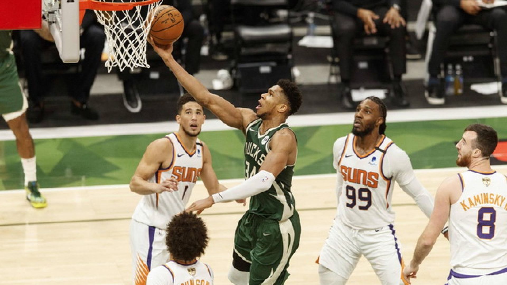 ΜΙΛΓΟΥΟΚΙ ΜΠΑΚΣ (Μάικ Μπουντενχόλζερ): Τάκερ 7 (1 τρίποντο, 3 ριμπάουντ), Γιάννης Αντετοκούνμπο 41 (14/21 δίποντα, 13/17 βολές, 13 ριμπάουντ, 6 ασίστ), Λόπεζ 11 (1), Μίντλετον 18 (3 τρίποντα, 7 ριμπάουντ, 6 ασίστ), Χόλιντεϊ 21 (3/4 δίποντα, 5/10 τρίποντα, 5 ριμπάουντ, 9 ασίστ), Κόνατον 8 (2), Πόρτις 11 (1 τρίποντο, 8 ριμπάουντ), Τιγκ, Θανάσης Αντετοκούνμπο, Φορμπς, Νουόρα 3 (1), Μέριλ