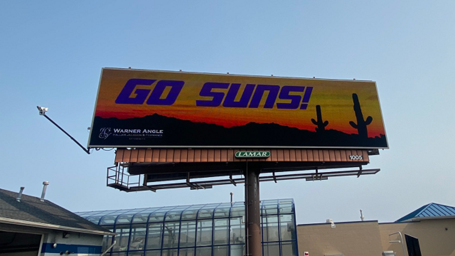 Μια απίθανη έμπνευση είχε μια εταιρεία από το Φοίνιξ, το δικηγορικό γραφείο Warner Angle, που πλήρωσε για να τοποθετηθεί μια τεράστια πινακίδα "GO SUNS" στον κεντρικό δρόμο I-43, ώστε να δώσει ώθηση στον Κρις Πολ, τον Ντέβιν Μπούκερ και την παρέα τους.