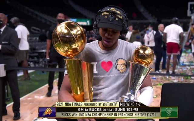 Ο Γιάννης Αντετοκούνμπο ήταν ο απόλυτος πρωταγωνιστής των Μπακς, στους τελικούς απέναντι στους Σανς, με τον Greek Freak να παίρνει... σπίτι του, τόσο το βραβείο του MVP των τελικών, όσο και το βαρύτιμο τρόπαιο του πρωταθλητή.