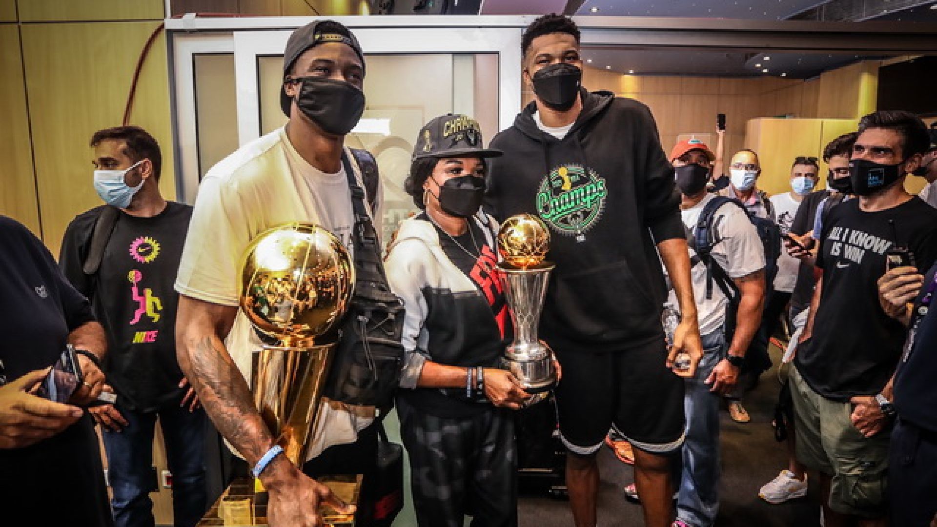 Οι δύο πρωταθλητές του ΝΒΑ, με την φανέλα των Μπακς, με… παρέα το βαρύτιμο τρόπαιο, μίλησαν, μεταξύ άλλων, για τα συναισθήματα τους, μετά την διαδρομή μέχρι την κατάκτηση του τίτλου, δήλωσαν έτοιμοι να βοηθήσουν την Εθνική Ελλάδας όποτε χρειαστεί, καθώς ο επόμενος στόχος του "Greek Freak" είναι η διάκριση με το εθνόσημο, ενώ έδωσαν ραντεβού με τους φίλους τους στο… ανοικτό γηπεδάκι των Σεπολίων!