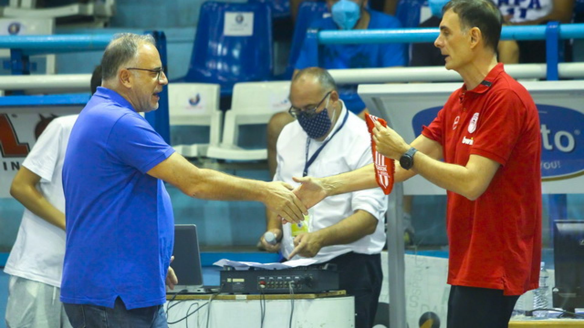 «Κάναμε ένα σοβαρό παιχνίδι για 40’. Όποιος μπήκε μέσα είχε σημαντική αμυντική συνεισφορά. Η άμυνα μας ήταν πολλή καλή. . Ήταν μια καλή ευκαιρία να παίξουμε ένα παιχνίδι σε τόσο έντονη ατμόσφαιρα και με αυτές τις συνθήκες, γιατί και εμείς πρέπει να γινόμαστε καλύτερη ομάδα, αυτά τα παιχνίδια μας βοηθούν», ήταν το αρχικό σχόλιο του προπονητή των «ερυθρόλευκων», στην κάμερα της ΕΡΤ, για να προσθέσει: