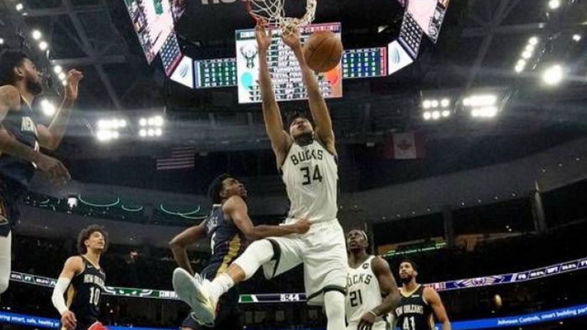 Ο Γιάννης Αντετοκούνμπο ήταν συγκλονιστικός απέναντι στους Πέλικανς, με τον Έλληνα MVP να κάνει triple double, έχοντας 35 πόντους με 10/14 δίποντα, 2/4 τρίποντα, 9/12 βολές, 16 ριμπάουντ, 10 ασίστ και 2 κλεψίματα σε 32΄.