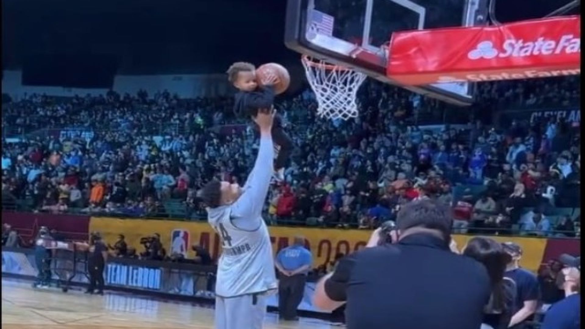Στο πλαίσιο του All Star Game του NBA, ο Γιάννης Αντετοκούνμπο βρίσκεται στο Κλίβελαντ, μαζί με την οικογένειά του και λίγο πριν την ανοικτή προπόνηση, πήρε αγκαλιά τον γιο του Λίαμ και τον σήκωσε ψηλά για να καρφώσει στο καλάθι .