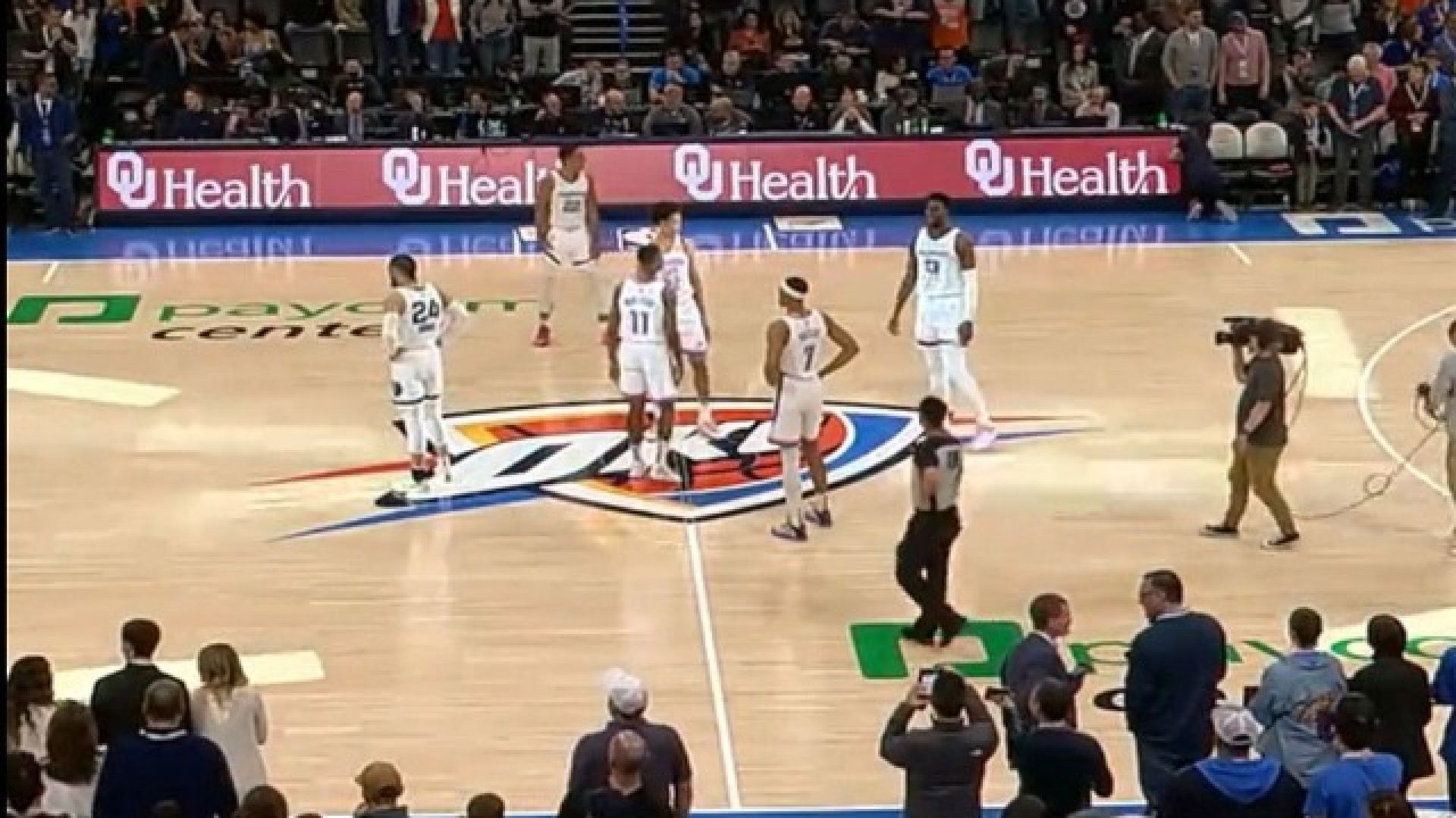 Επικό στιγμιότυπο στο τζάμπολ των Θάντερ με τους Γκρίζλις, αφού οι δύο ομάδες εμφανίστηκαν αμφότερες, φορώντας λευκές εμφανίσεις.