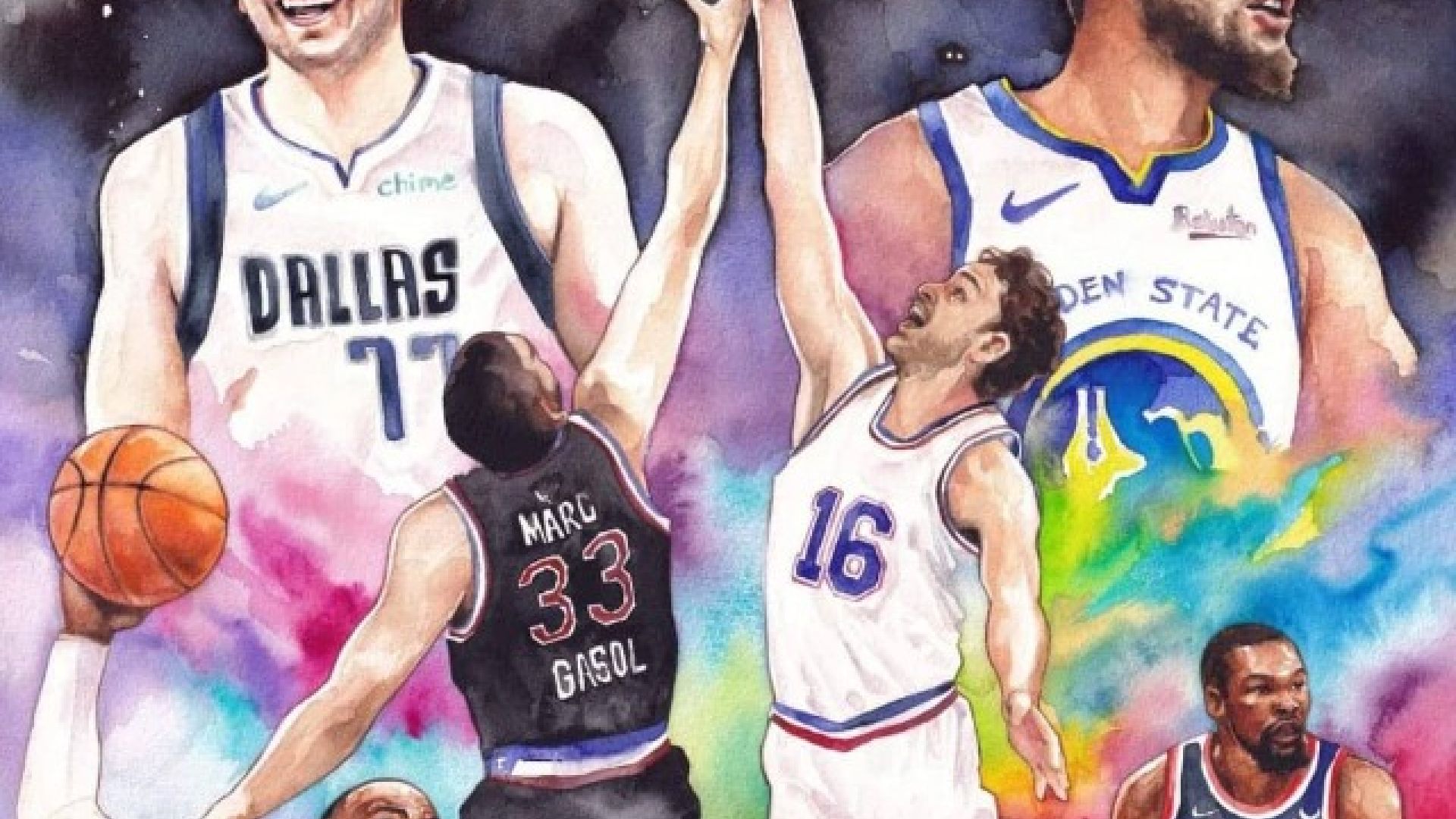 ΔΗΛΩΣΕΙΣ ΤΗΣ MARIA: «Σε αυτή τη χειροποίητη υδατογραφία θα ήθελα να δείξω μερικά από τα πιο εμβληματικά αστέρια του NBA που με ενέπνευσαν για διαφορετικούς λόγους: Το ιστορικό τζάμπολ του NBA All-Star Game 2015 από τα αδέρφια Gasol, μια στιγμή που αντιπροσώπευε την Ισπανία στο ΝΒΑ, ο Kevin Durant στην συγκινητική ομιλία του μετά την ανάδειξή του ως MVP για την σεζόν 2013-14, η ικανότητα του Stephen Curry να πετυχαίνει τρίποντα από εξωπραγματικές αποστάσεις, τον Luka Doncic, που με χαρά τον έχω δει να μεγαλώνει τόσο γρήγορα και να εξελίσσεται με ταχύτατους ρυθμούς από τις ημέρες που ήταν στη Μαδρίτη, και τον Lebron James…ο οποίος είναι ένα είδωλο που αγγίζει όλες τις γενιές και η επίδρασή του ξεπερνά τα όρια του γηπέδου. Τους έχω ενοποιήσει όλους δημιουργώντας κύματα με τα χρώματα των ομάδων τους, αναζητώντας με το πινέλο τη λεπτομέρεια των εκφράσεων των προσώπων και των κινήσεων του σώματός τους.»