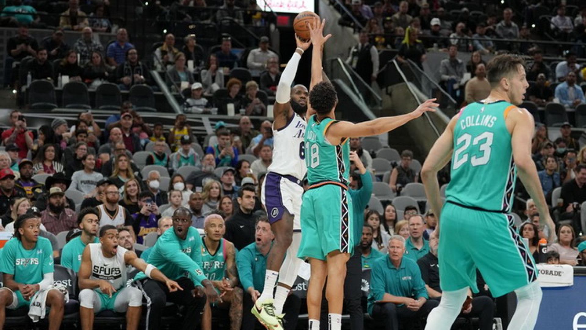 Η επιστροφή του Λεμπρόν Τζέιμς στα παρκέ, μετά από απουσία πέντε αγώνων, συνοδεύτηκε με το πρώτο «διπλό» για τους Λέικερς, που πέρασαν από το Σαν Αντόνιο, επικρατώντας των Σπερς με 105-94.