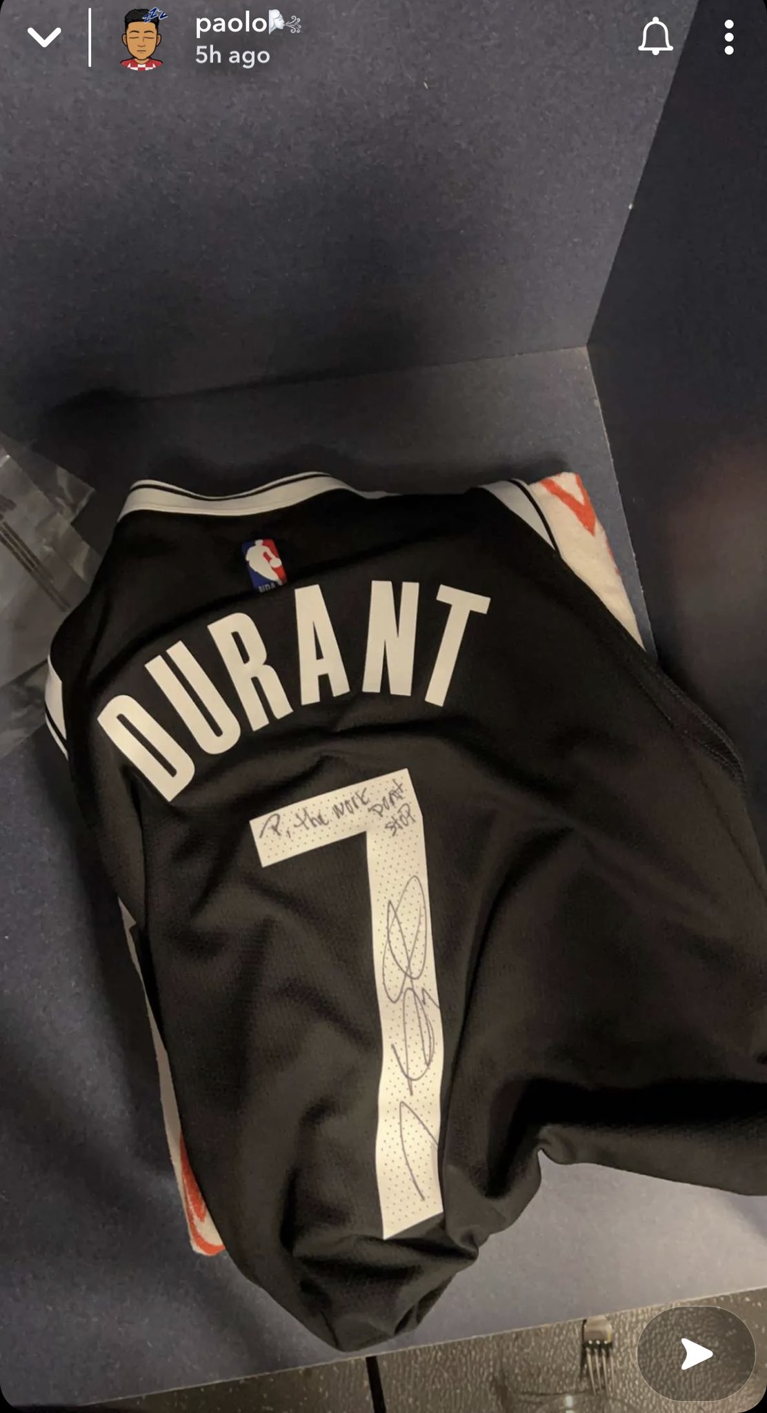 Μια όμορφη στιγμή εξελίχθηκε όταν ο KD που έχει τόσα χρόνια πορείας στην κορυφαία λίγκα του κόσμου, δίνει τη φανέλα του σε έναν πρωτοεμφανιζόμενο.