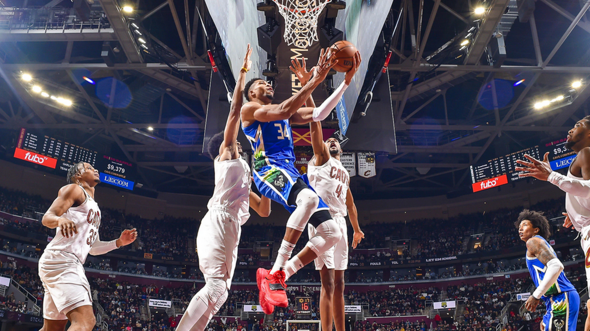 Ο Γιάννης Αντετοκούνμπο ήταν ασυγκράτητος απέναντι στους Καβαλίερς, τελειώνοντας το παιχνίδι με 45 πόντους, 14 ριμπάουντ και τέσσερις ασίστ.