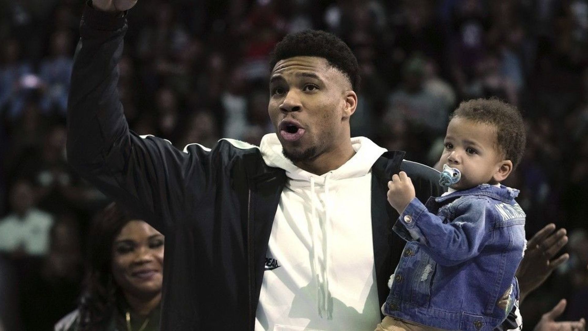Ο ηγέτης των «Ελαφιών» έλαβε ένα καδράκι με μια μπάλα, μια φανέλα και ένα διχτάκι από μπασκέτα. Κρατώντας το παιδί του στην αγκαλιά και με την οικογένειά του να είναι παρούσα, ο Γιάννης Αντετοκούνμπο γύρισε στο κοινό και τόνισε ότι θέλει άλλο ένα πρωτάθλημα με τους Μπακς.