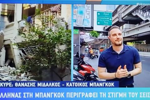 Η… τρέλα των φίλων του Ολυμπιακού έφτασε μέχρι την Μπανγκόκ, με έναν Έλληνα κάτοικο της περιοχής, να αποκαλύπτει πως, την στιγμή του τεράστιου σεισμού που έπληξε την περιοχή, στο μυαλό του είχε, την οικογένεια του, τι στιγμές που έζησε και την… Ολυμπιακάρα (!), εκφράζοντας την ευχή ο Μπαρτζώκας να φέρει την Euroleague στον Πειραιά!