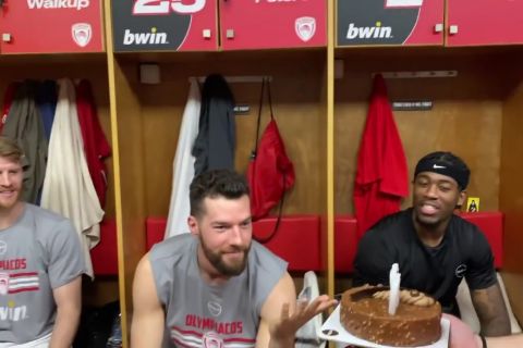 Ο Άλεκ Πίτερς είχε χθες (13/4) τα γενέθλια του και η ομάδα του Ολυμπιακού του προσέφερε μια τούρτα στα αποδυτήρια, με τους συμπαίκτες του να του τραγουδάνε το... απαραίτητο happy birthday.