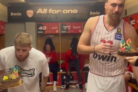 Ολυμπιακός – Γενέθλια στα αποδυτήρια του ΣΕΦ για Γουόκαπ και Μιλουτίνοβ (vid)