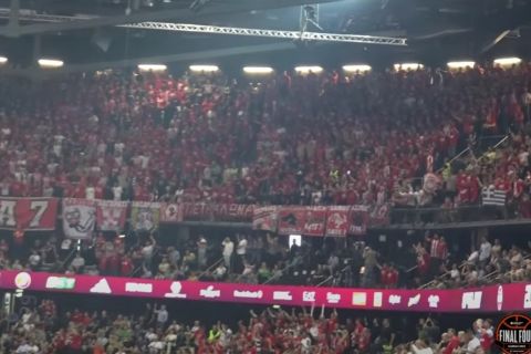 Ούτε δευτερόλεπτο δε σταμάτησε ο κόσμος του Ολυμπιακού να στηρίζει την ομάδα του στη Zalgirion Arena, με τους παίκτες τον Πειραιωτών να ζουν με το δικό τους τρόπο τον τελικό με τη Ρεάλ.