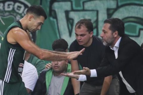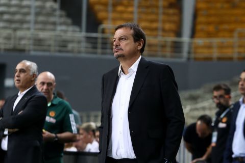 Πολλά νεύρα από τον προπονητή του Παναθηναικού, Εργκίν Αταμάν στα αποδυτήρια μετά την νίκη των "πρασίνων" επί του Αμαρουσίου με 82-71.