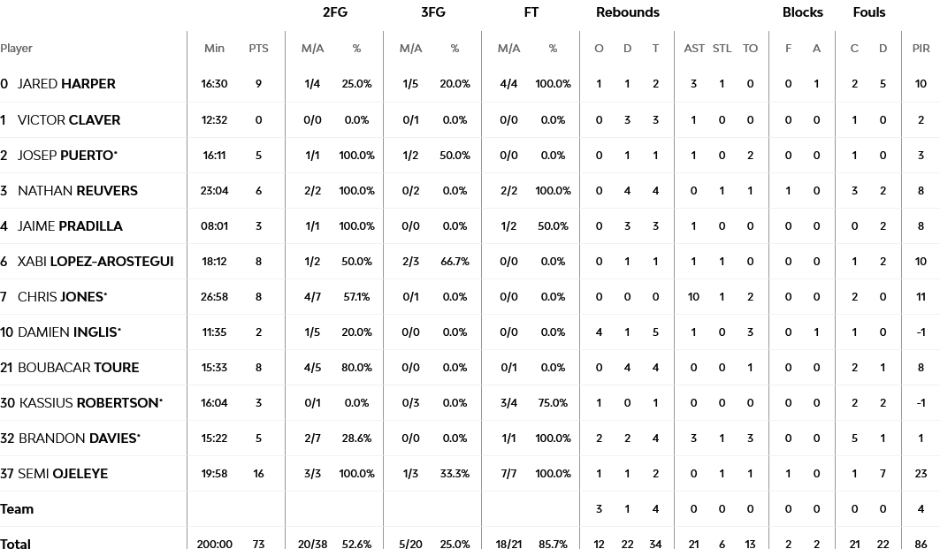 Ένα εντυπωσιακό 21-4 στο ξεκίνημα της τρίτης περιόδου, που μετέτρεψε το 41-37 του ημιχρόνου σε 62-41, ήταν αυτό που ουσιαστικά έκρινε την αναμέτρηση της Βαλένθια, με τις «νυχτερίδες» να φτάνουν στο άνετο 90-67.